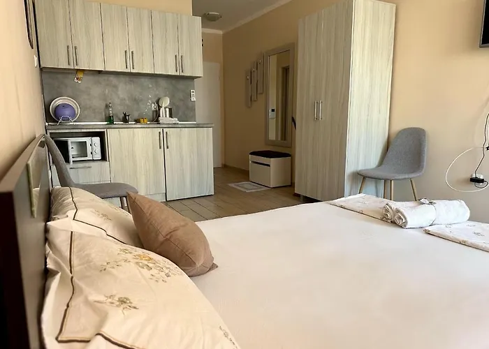 يشتمل مكان الإقامة على المطبخ مع المايكرويف وثلاجة وأدوات المطبخ لأولئك الذين يرغبون في الخدمة الذاتية. يقع Alba Family Club Restaurant، الذي يقدّم المأكولات الإيطالية، مباشرةً بجوار الشقة. وتقع Eternity - Private Studios على بعد 60 كم من مطار بورغاس.
